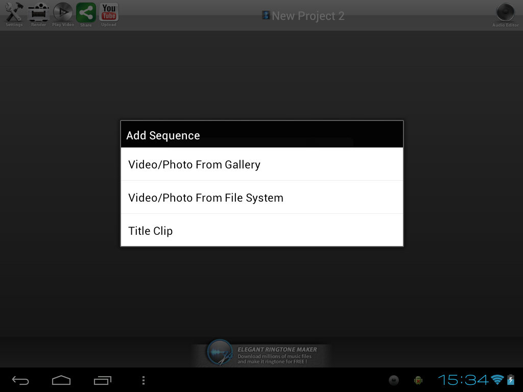 Вот с титров и начнём. В этом несложном титровальщике разберётся любой, не имеющий и представления о подобных программах. Здесь имеется возможность ввода текста на любом языке, изменения его размера, стиля и цвета. Набранный текст перетаскивается пальцем в нужное место экрана. Помимо этого, имеется возможность изменения фона для данной титровой заставки. Разрешается выбрать рисунок либо залить фон пользовательским цветом. После того, как титры готовы, программа возвращает главное окно, на котором уже имеется только что созданный объект.