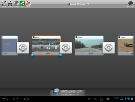 Хуже того: данные программы не являются видеоредакторами. Это, скорее, утилиты для резки или склейки коротеньких видеофрагментов. Либо утилиты, предназначенные каким-то образом трансформировать один выбранный в галерее видеоролик (перевернуть видео вверх тормашками, залить получившийся шедевр на Youtube и получать от этого эстетическое наслаждение).