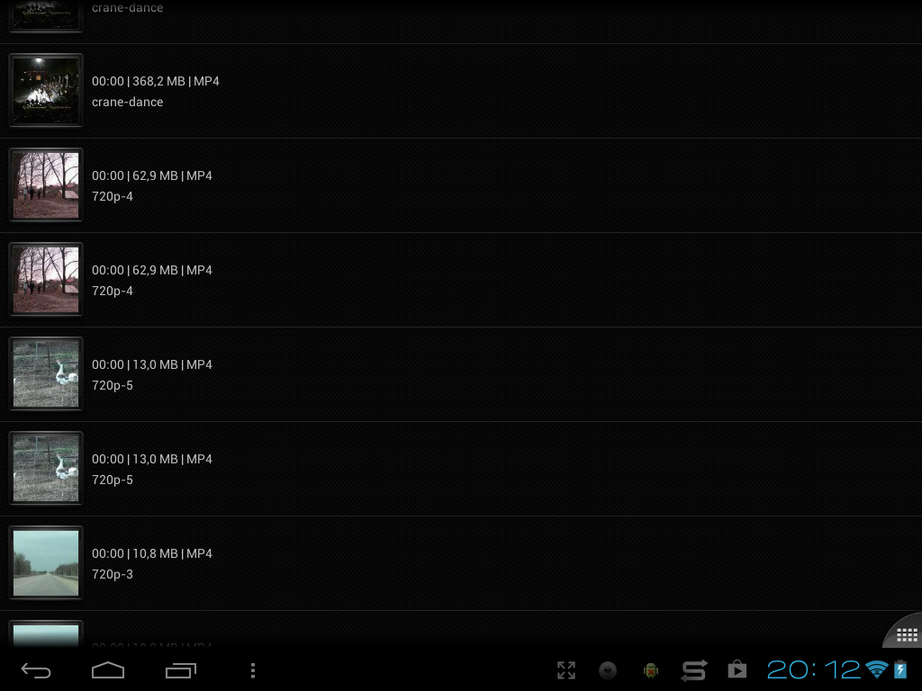планшете видеофайлов с пиктограммами-миниатюрами. На следующем рисунке можно видеть, что в галерее отображается по нескольку экземпляров одних и тех же файлов. Это не программная ошибка. Дело в том, что из-за капризов некоторых тестировавшихся приложений (см.